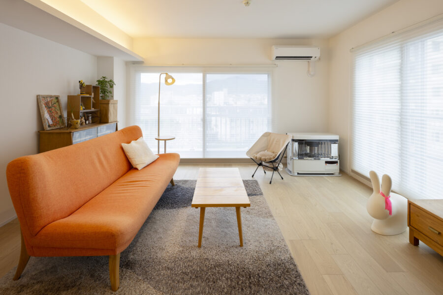 以前から大切に使われているオレンジのソファと同系色を取り入れることで、空間に統一感とあたたかみをプラス。