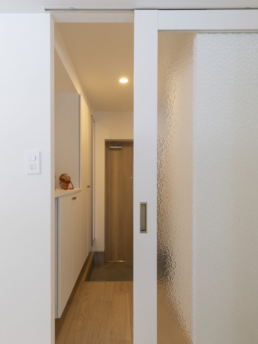 ガラス入りの扉を採用し、閉じていても空間の広がりを感じられるように。