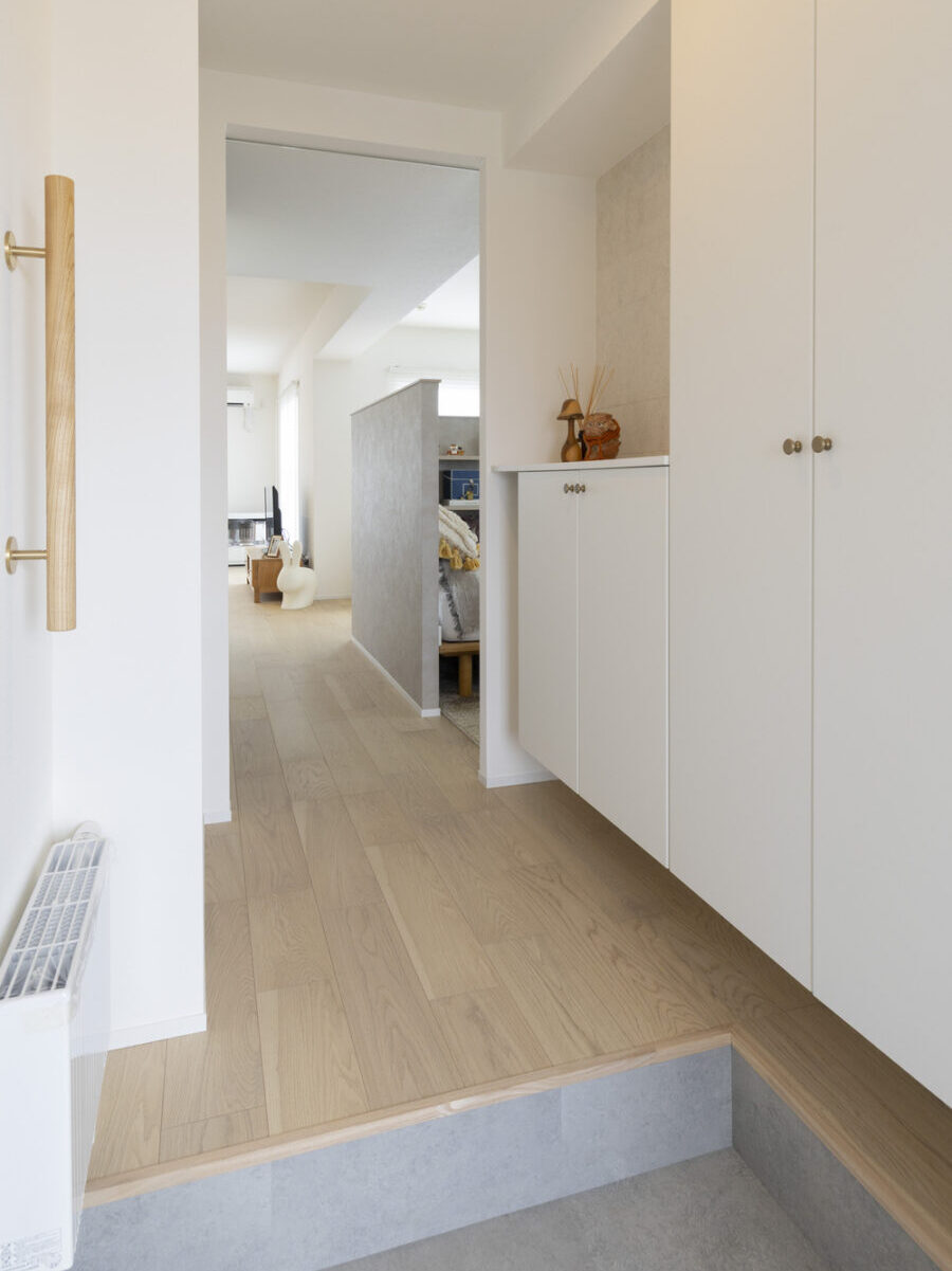 玄関にはパネルヒーターを設け、冬でも寒さを感じにくい快適な空間にしました。